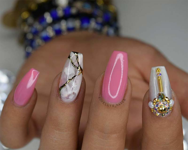 3. Unghie acriliche in marmo e metallo
