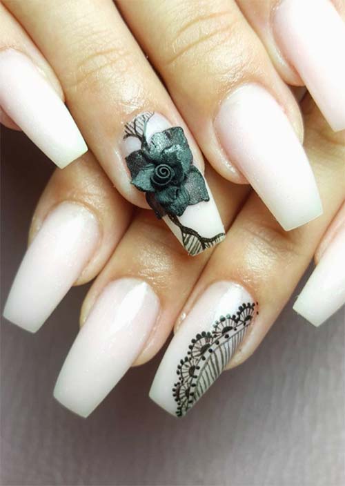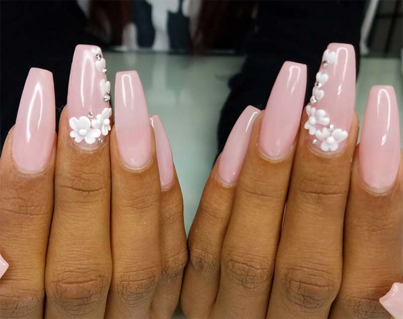 I fiori non sono un concetto nuovo nella nail art, ma fatti in questo modo non sono solo belli e intricati, ma anche completamente interessanti e intriganti. Le unghie acriliche più semplici che lo circondano servono solo a migliorare ulteriormente l'aspetto generale del design delle unghie dei fiori.