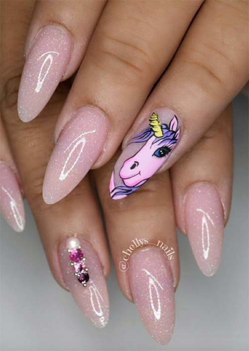 18. Unghie acriliche rosa unicorno