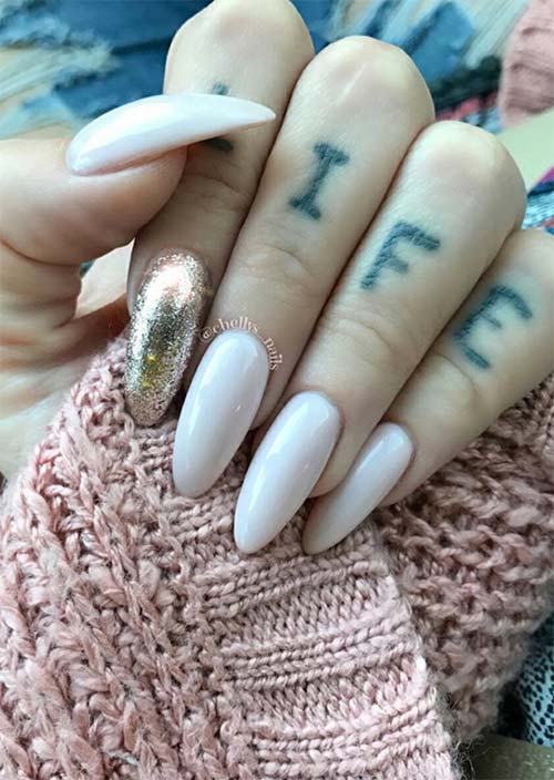 Le manicure che presentano un unico colore e un tocco di glitter su una singola unghia sono divertenti e chic con una semplicità che non può essere negata come elegante.