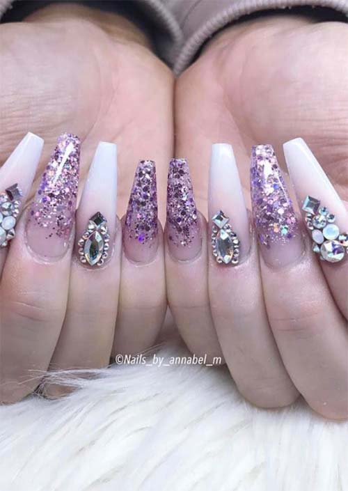 47. Unghie acriliche da ballerina scintillanti e scintillanti