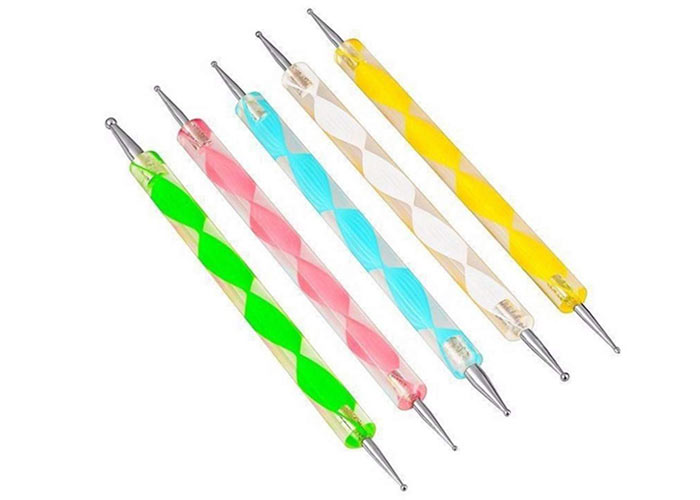 punti, di solito in nero, sono un elemento importante delle unghie estive. Se desideri ricreare questi look, avere una buona gamma di strumenti per punteggiare le unghie è un must! È più facile che usare uno spazzolino o uno stuzzicadenti, con pulito, anche punti ogni volta. Puoi sperimentare punti di ogni dimensione con questo colorato set di 5 pezzi! È disponibile su Amazon .