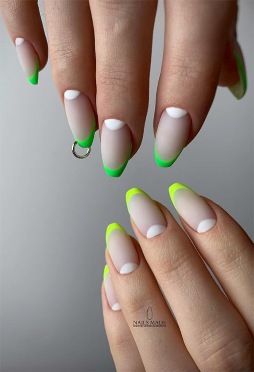 57. Negative Space Neon Matte Manicure