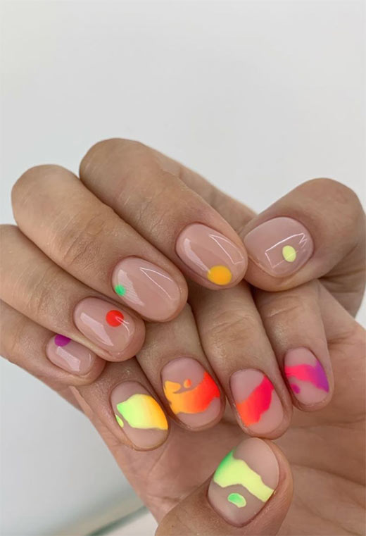 Continuiamo la nostra immersione profonda nella tendenza delle unghie estive nude con questo look colorato! Creare questo tipo di onda gradiente non è un progetto facile, ma l'effetto arcobaleno ne vale la pena. I punti, d'altra parte, sono un po' più facili da raggiungere.