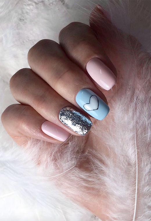 23. Rosa, Blu, e Foil Nail Art di San Valentino