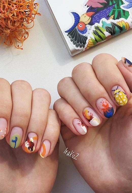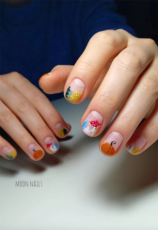 47. Unghie artistiche autunnali con i tuoi migliori amici