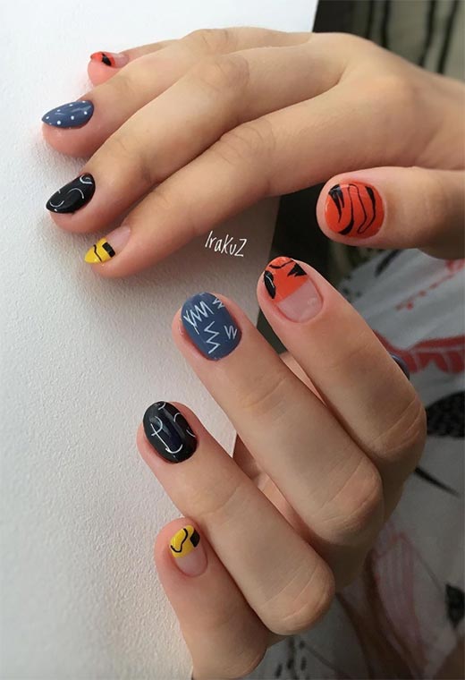 33. Unghie moderne con colori caldi