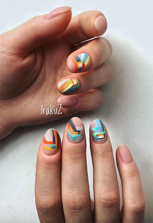 Se ami un design sottile delle unghie, adorerai questo. Combina alcuni dei tuoi colori preferiti in alcune forme all'avanguardia, e farai girare la testa alle persone.