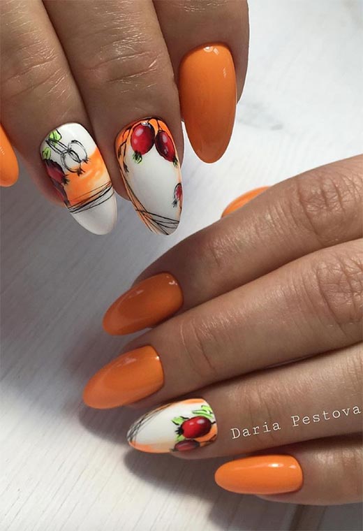 Con i rossi, gialli, e verdi, è facile vedere come i nostri disegni per le unghie autunnali possono essere ispirati dal raccolto autunnale. Così tanti frutti e verdure diventano facilmente disponibili. Prendi un po' di quell'ispirazione e sii creativo con essa sulle tue unghie.
