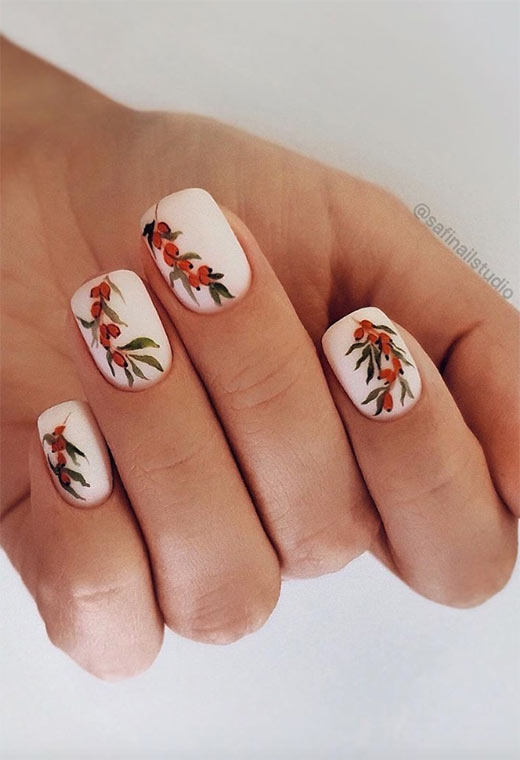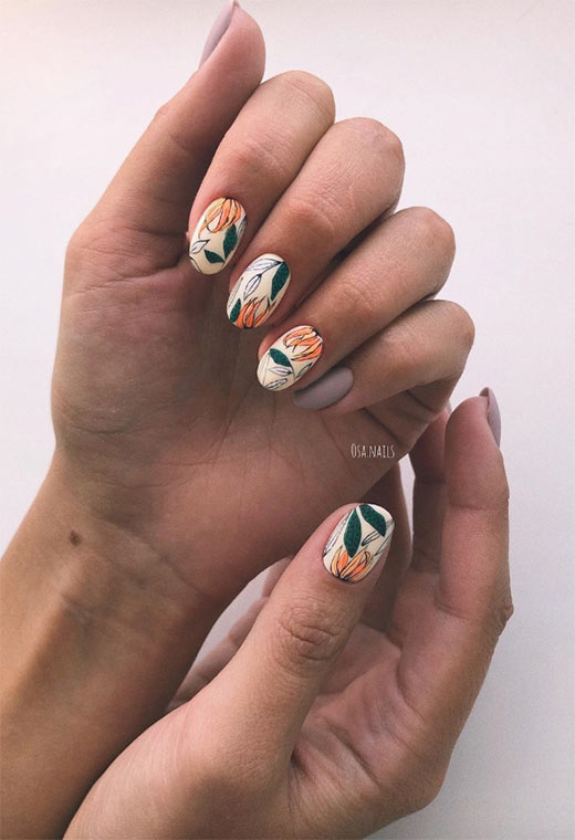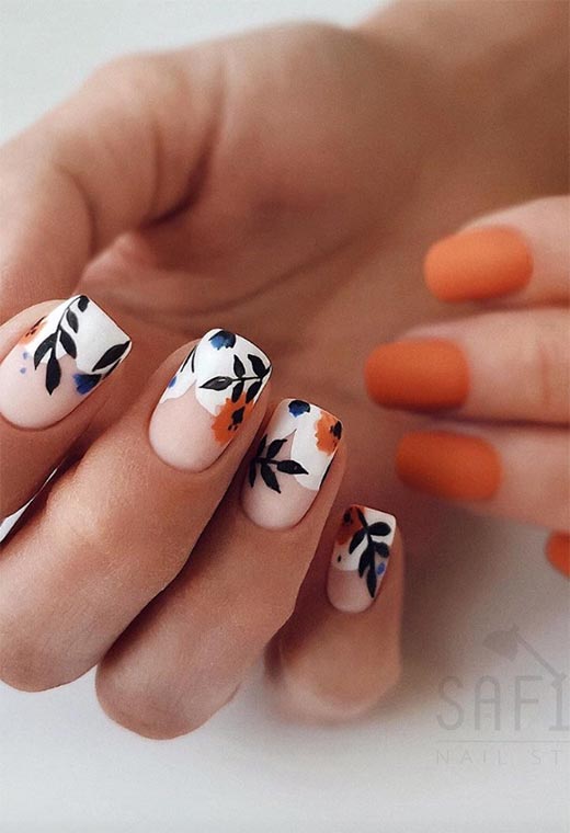 64. Unghie autunnali classiche con fiori pittorici