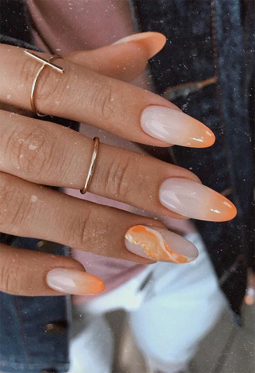29. Unghie drammatiche a forma di mandorla con accenti arancioni