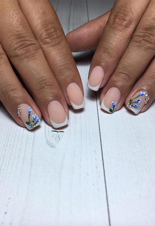 17. Unghie francesi con motivi floreali
