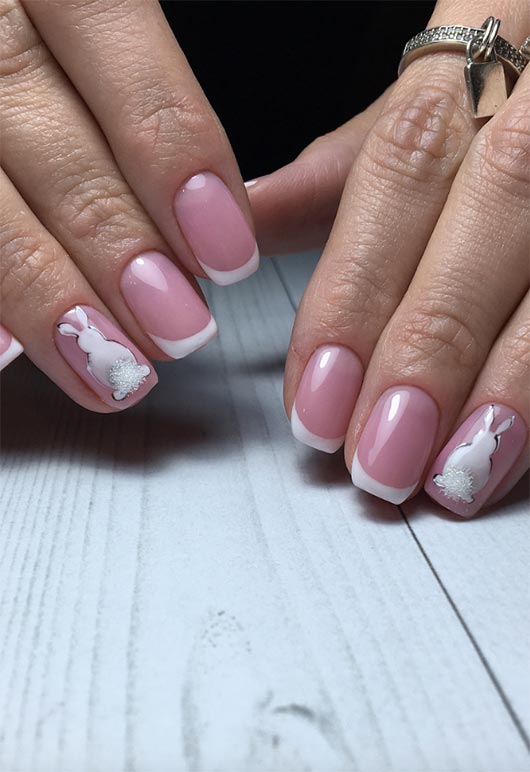 6. Unghie francesi con coniglietto bianco