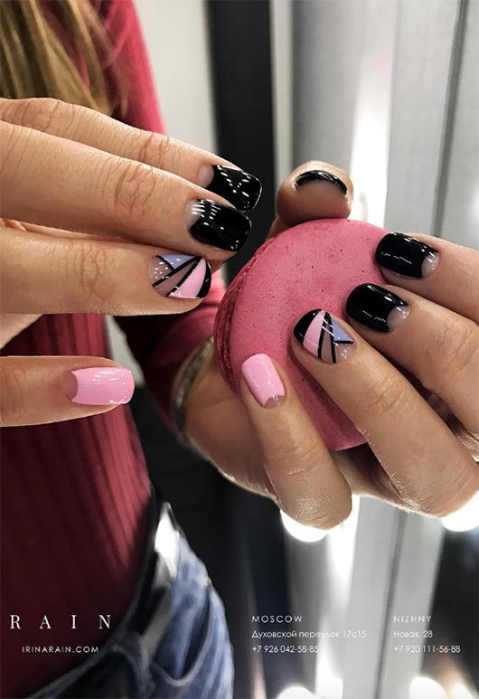 60. Blended and Lined Nail Design for Short Nails