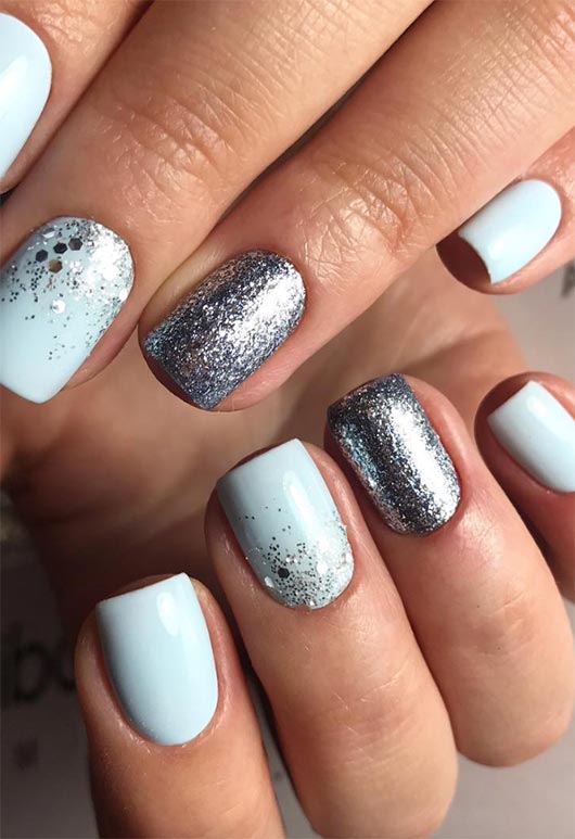 26. Unghie corte accuratamente glitterate