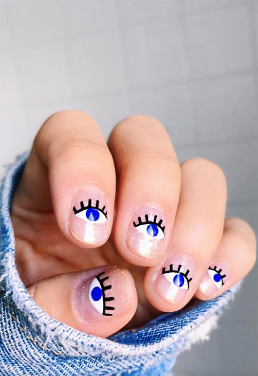 16. Nail art corta con occhi azzurri