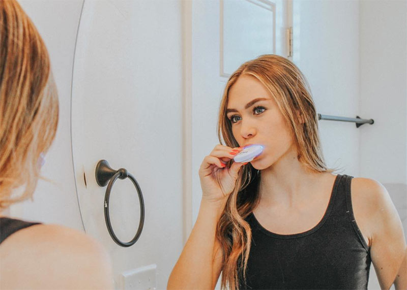 La maggior parte dei dispositivi per lo sbiancamento dei denti include una luce LED e un boccaglio, e anche una sorta di gel sbiancante per denti con perossido di carbammide. La luce a LED dovrebbe aiutare ad attivare il gel sbiancante per denti per rendere i denti più bianchi.