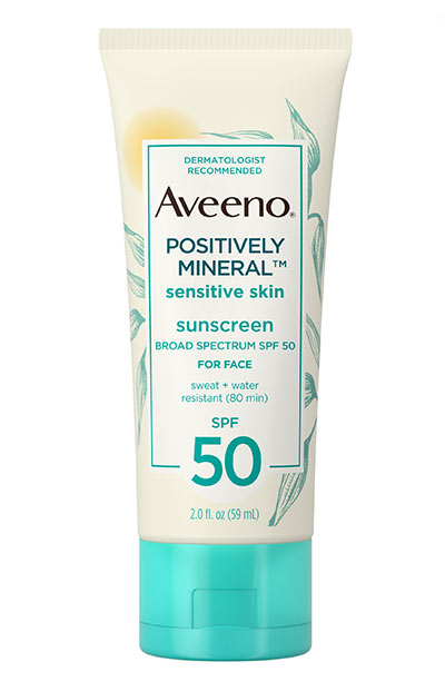 2. Crema solare viso sensibile ai minerali positivamente Aveeno SPF 50