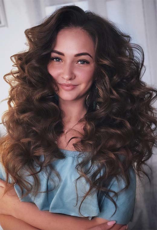 Ecco un altro look bomba da brunetta per farti sudare! Ultra voluminoso, ondulato, e arruffato, questo look fa apparire il glamour senza sforzo. I capelli sono di un ricco color cioccolato con una lucentezza lucida, toccato da alcuni riflessi marroni più chiari che sono sottili e appena percettibili.
