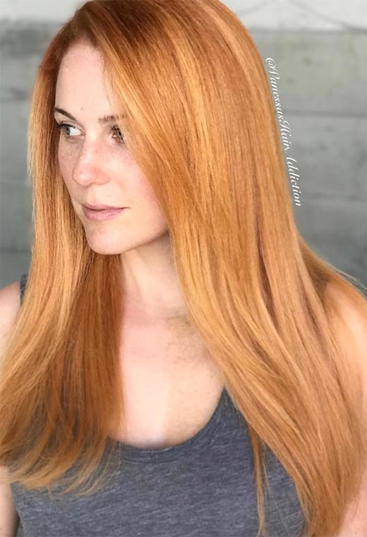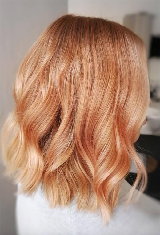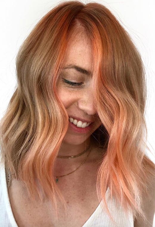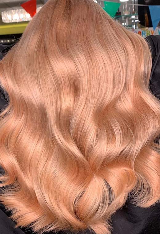 If your hair is naturally light, or ifyou’ve already bleached it, this peach tone gives the most flawless strawberryblonde hair color while also fortifying the hair. This color is really more ofa tint that infuses the hair with peachy, pastel shades.