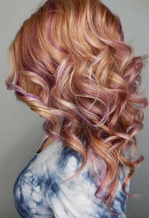 Questo è uno di quei look così unici ma morbidi che lasceranno a bocca aperta le persone. Questa volta, il biondo fragola è il colore di base, e striature fumose di quarzo rosa e viola ametista aggiungono il contrasto cromatico più adorabile per un look ipnotizzante.