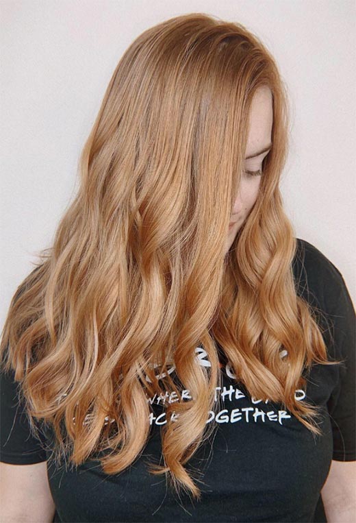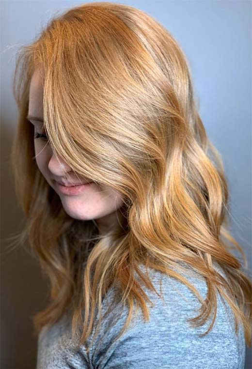 • Those with warm undertones to their skin will do best with warm strawberry blonde hair colors that lean more towards gold, copper, or orange. Pinkish strawberry blonde shades are not totally off-limits, but they won’t be as flattering to your natural golden-yellow undertone.