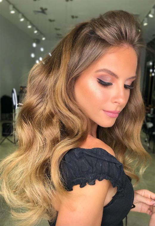 You might think dark blonde hair colors are more serious than light blonde shades, but that’s not true! They can be just as delicate and pretty, and certainly fitting for fantasy princess waves. The magic comes from a few thin streaks of a lighter color that add that reflective effect.
