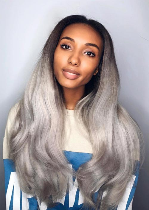 The icy sheen is an unexpected twist on traditional feminine hairstyling. The long and luscious hair is fit for a mythical goddess – if you’re looking for a luminously opulent look, this will be your go-to!