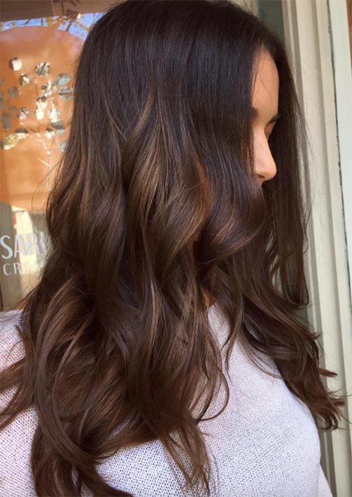 sofisticato, sensuale e abbagliante, questa bruna profonda è una versione più tradizionale dei colori dei capelli invernali. Una bruna profonda abbinata ai babylights castani più discreti crea un look elastico e lussureggiante.
