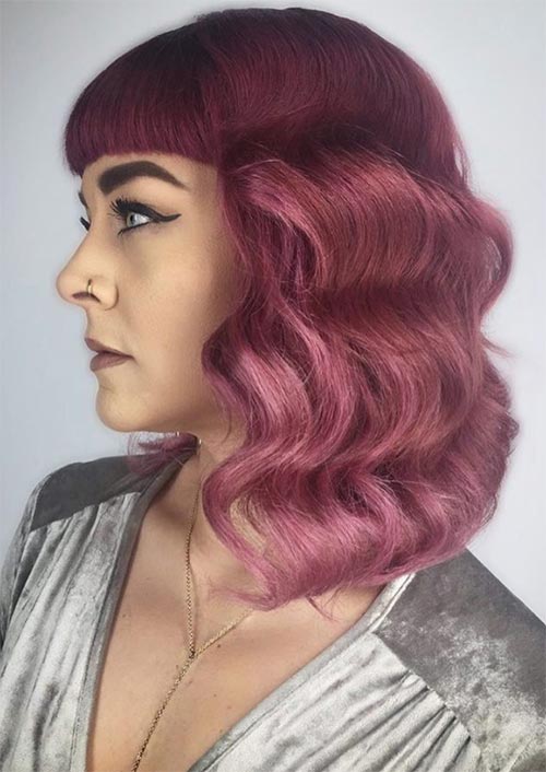 Il rosa non è riservato a una ragazza, estetica preppy, e l'audace, i look inflessibili di questa stagione invernale lo dimostrano! Questo rosa animato è rock 'n' roll e audace con un botto di livello medio e onde orizzontali esagerate. Questi capelli invernali porteranno il tuo stile di vacanza in un luogo provocante e alla moda e brilleranno se abbinati a un vestito con paillettes argento, e tacchi a spillo sexy.