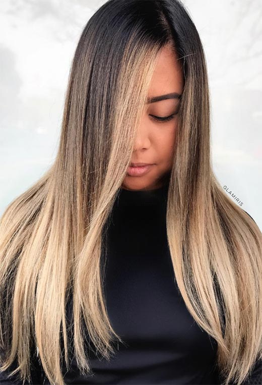 La combinazione di colori nero e biondo è la più sorprendente che possa essere, senza canalizzare i colori della moda. Qui il gradiente è davvero sorprendente, creando un effetto di illusione ottica con la sua dimensione intensa. Questo gradiente è magnificamente abbinato a un po 'di stratificazione graduale alle estremità proprio vicino alla parte anteriore.