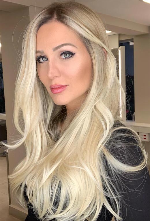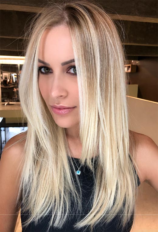 Quello che stai vedendo qui sono i capelli che sono stati portati al biondo chiaro, con strati leggermente ondulati che donano ai capelli un aspetto sollevato. Questa stratificazione unica è graduale, ma solo vicino alla parte anteriore del viso, con il resto dei capelli seduto drammaticamente di qualche centimetro più in basso.