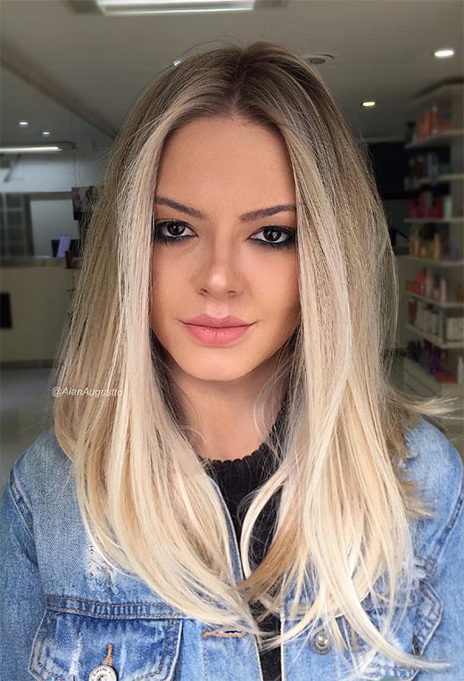 Questi sono esattamente il tipo di tenda, strati lunghi graduali che vale la pena provare se desideri attirare tutta l'attenzione sui tratti del viso. Questi strati sono accentuati da alcuni tocchi di platino freddo sulla base bionda più calda.