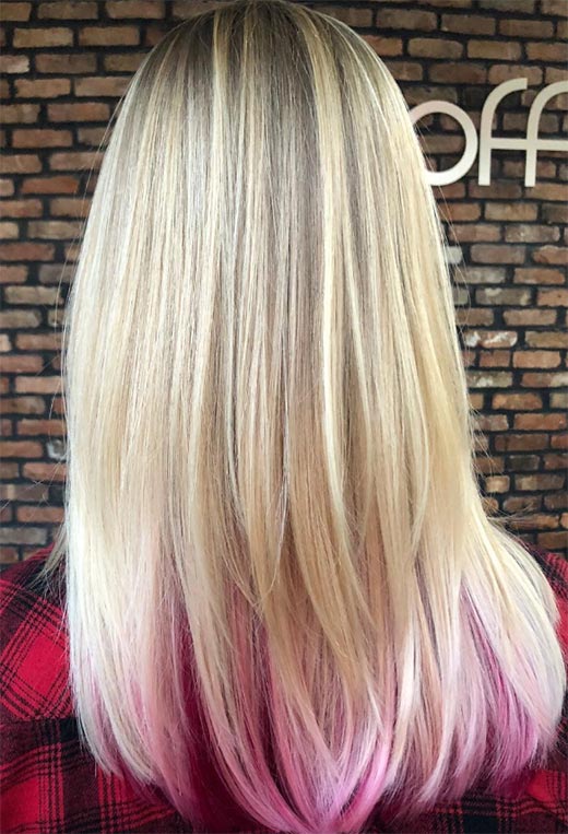 I colori da sbirciatina funzionano alla grande con tagli di capelli lunghi e scalati, perché i fili più corti consentono a un po' del colore divertente di sbirciare senza essere esagerato. Questo taglio a doppio strato fa proprio questo, con uno strato di rosa nascosto sotto. Lo stile elegante rende il tutto estremamente moderno.