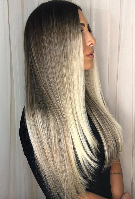 C'è qualcosa di super civettuolo negli strati lunghi che sono appena leggermente capovolti alle estremità. Aggiunge un fascino giocoso ai capelli stirati e ai colori severi come questo colormelt platino.