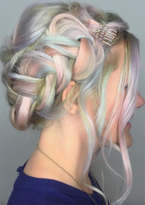 28. Updo intrecciato pastello con forcine a vista