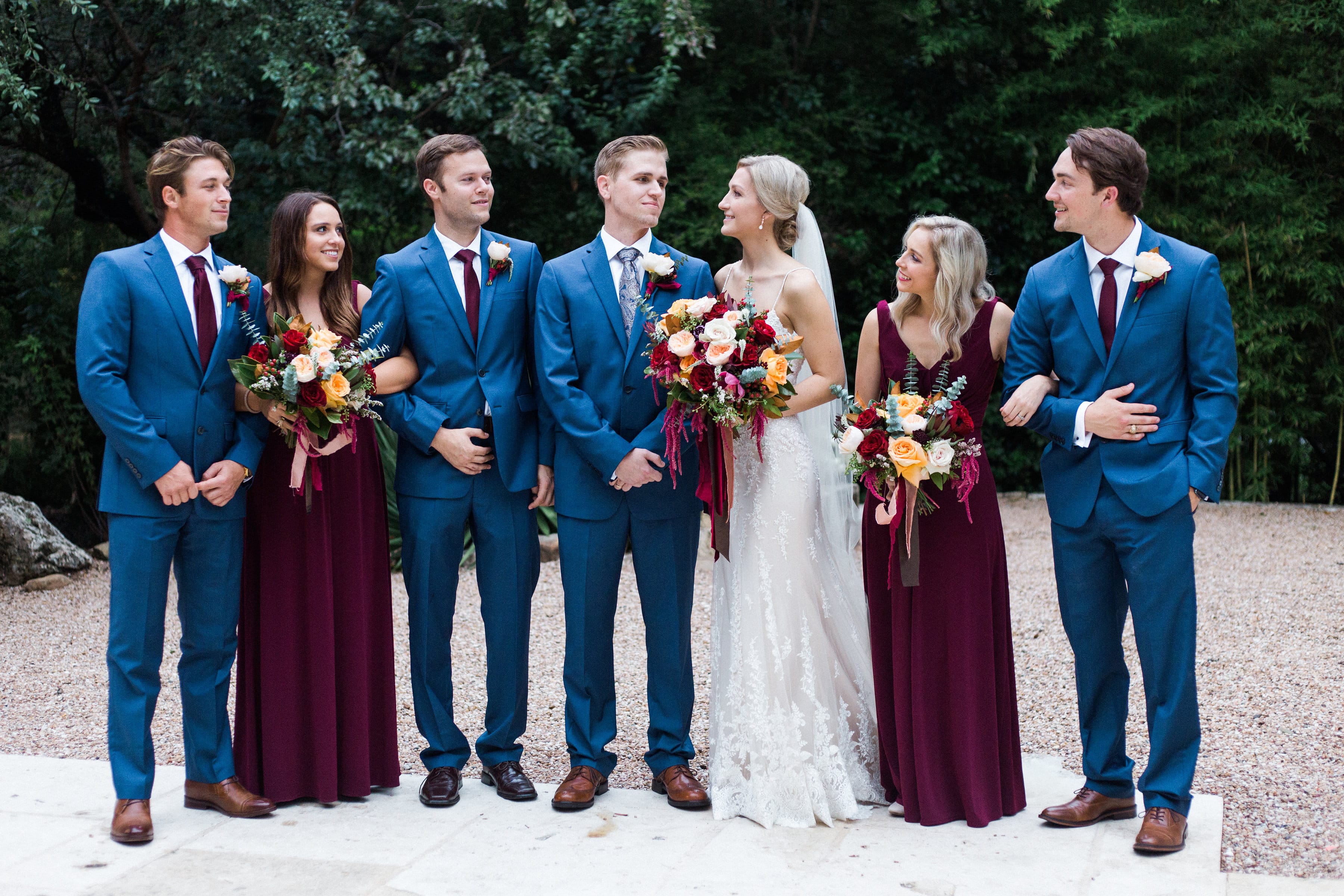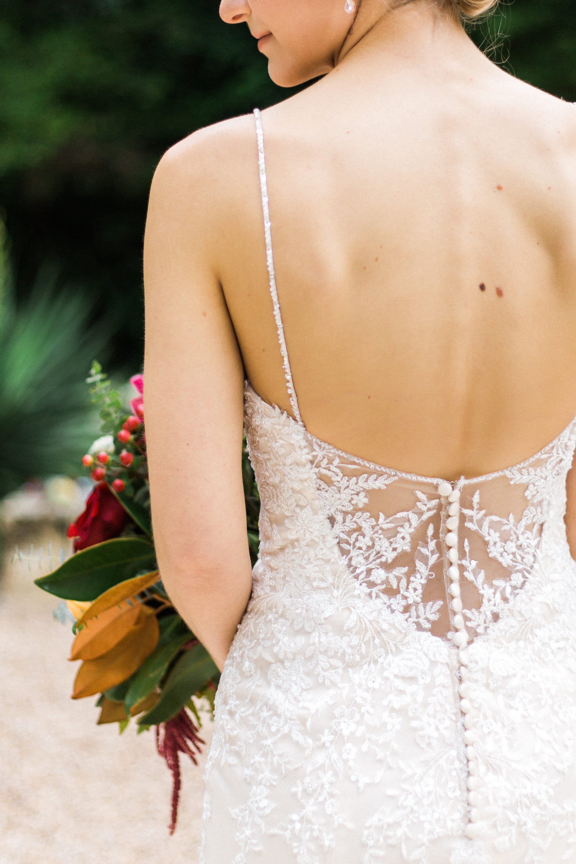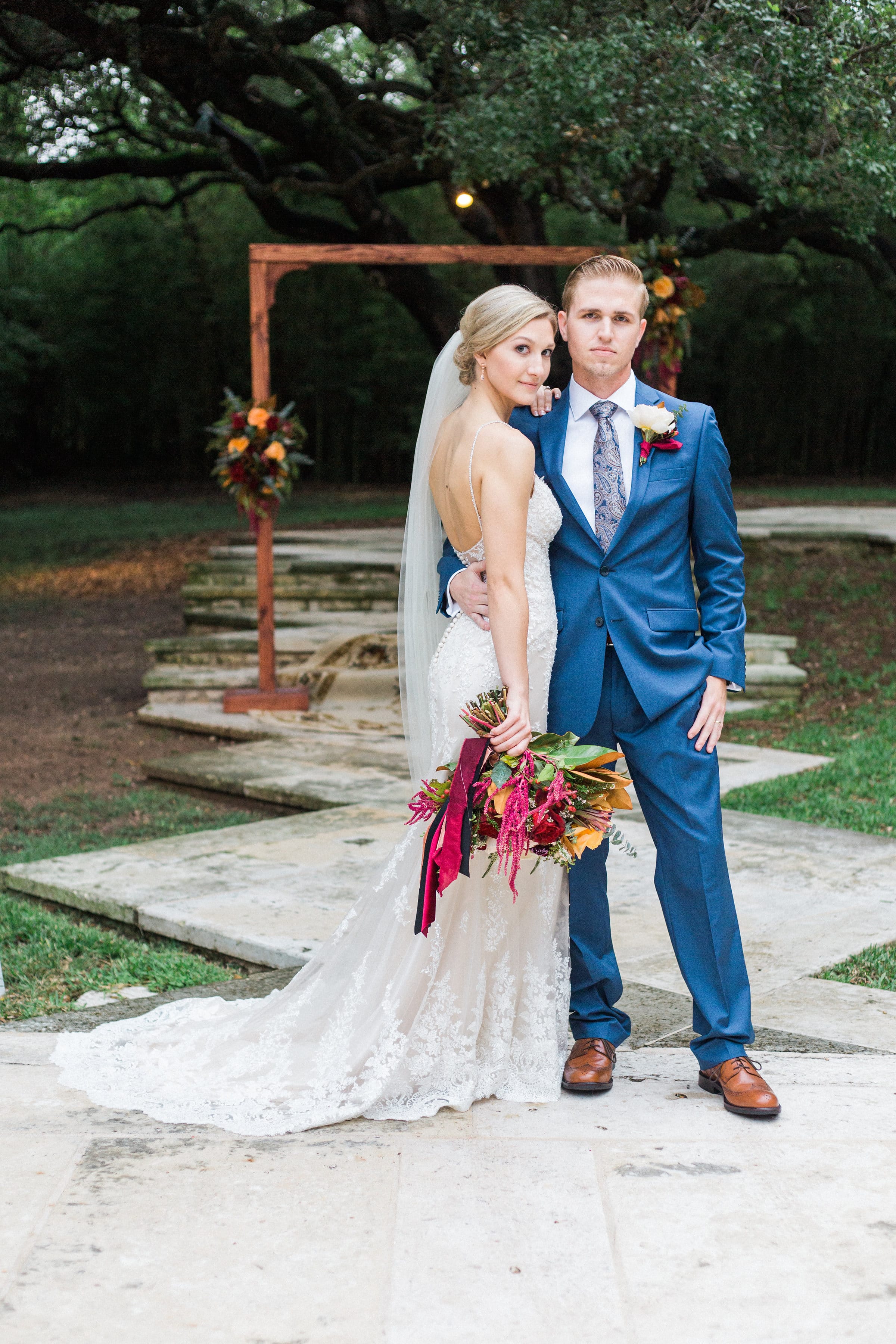 I graziosi pastelli e i fiori primaverili sono dietro l'angolo, ma se stai pianificando le nozze autunnali per il 2018, probabilmente sei in vena di sontuose tavolozze e romantici luccichii. Lasciati ispirare da questo matrimonio all'aperto con toni gioiello e abito di pizzo scintillante!