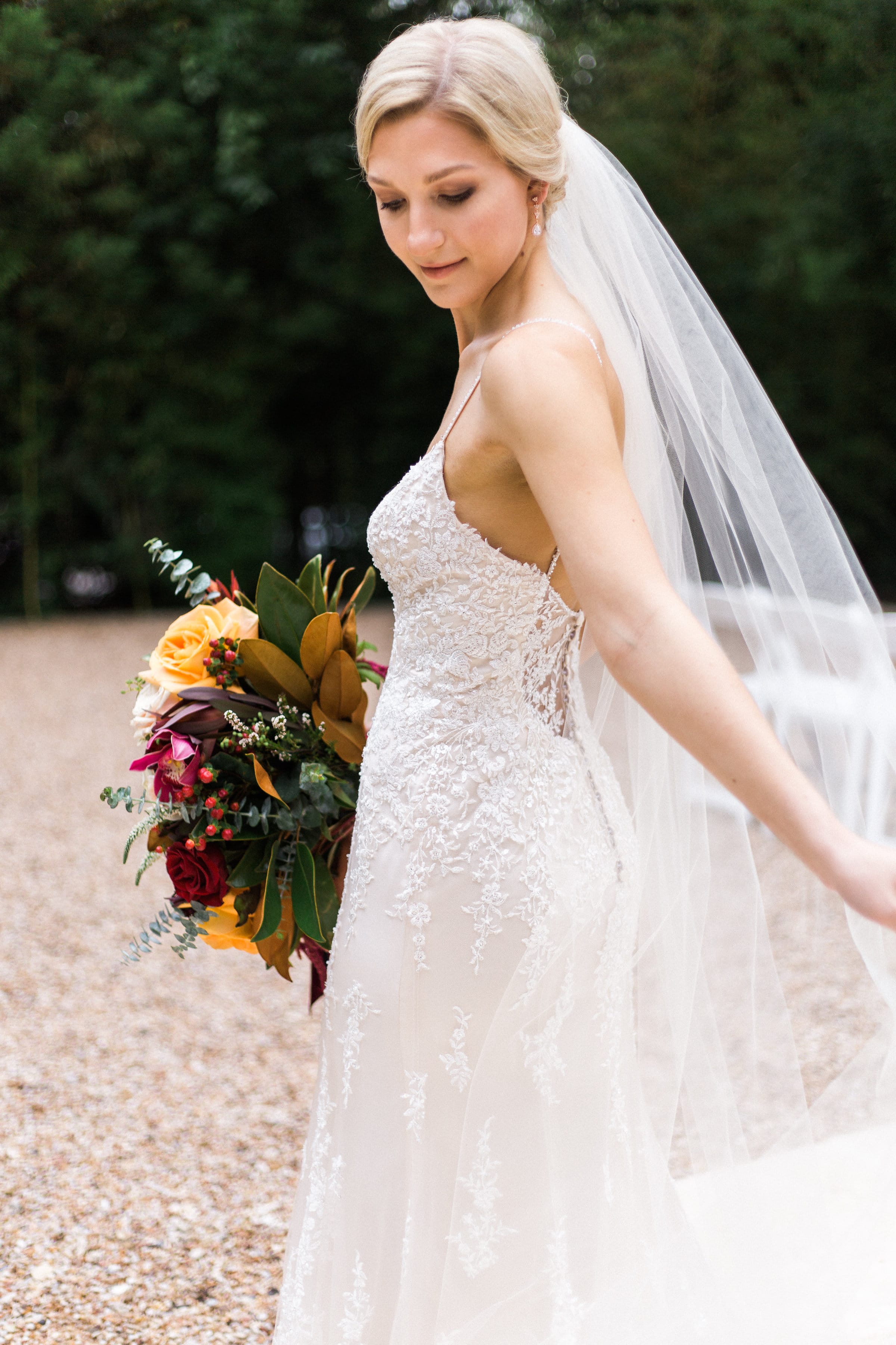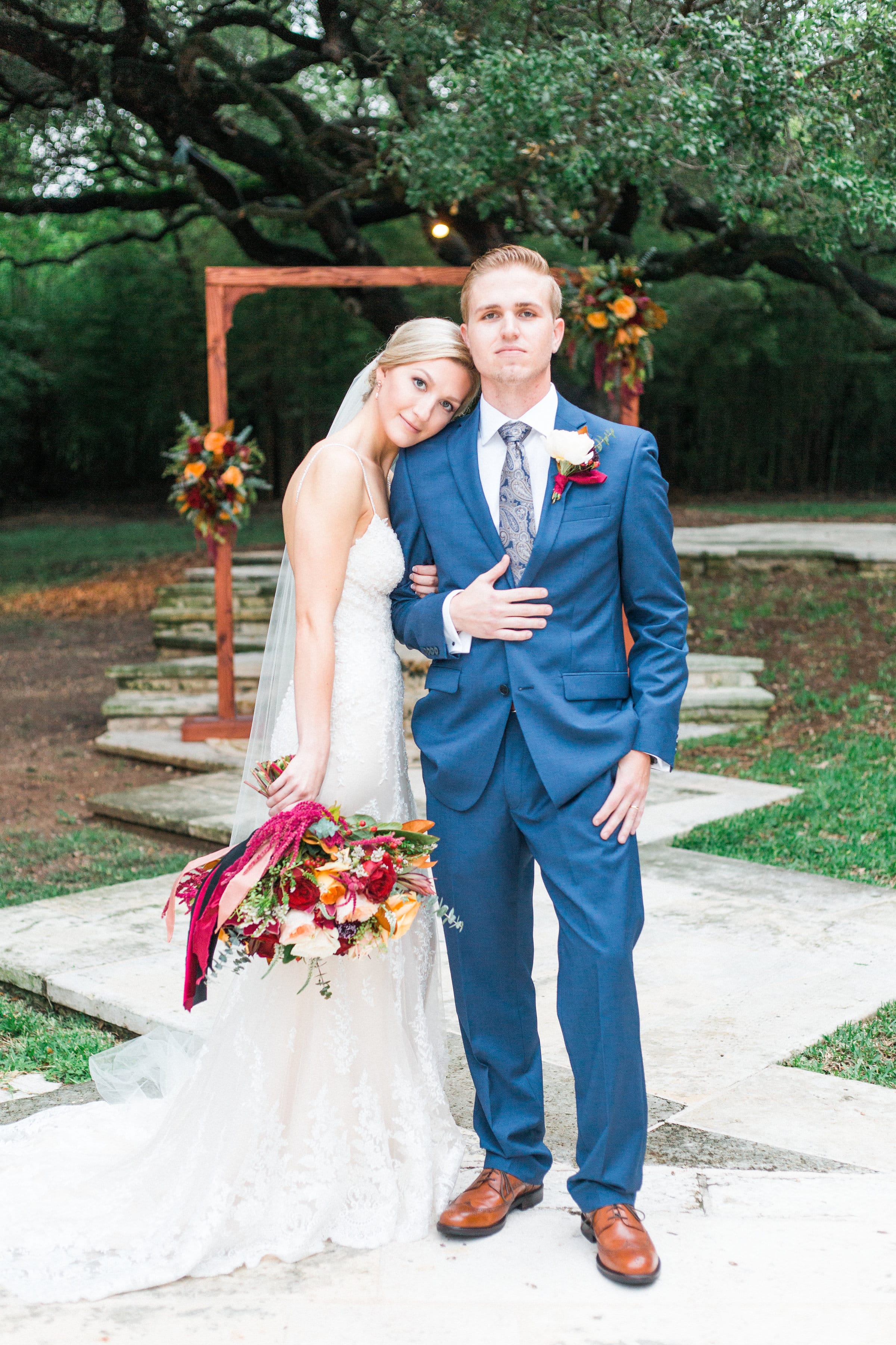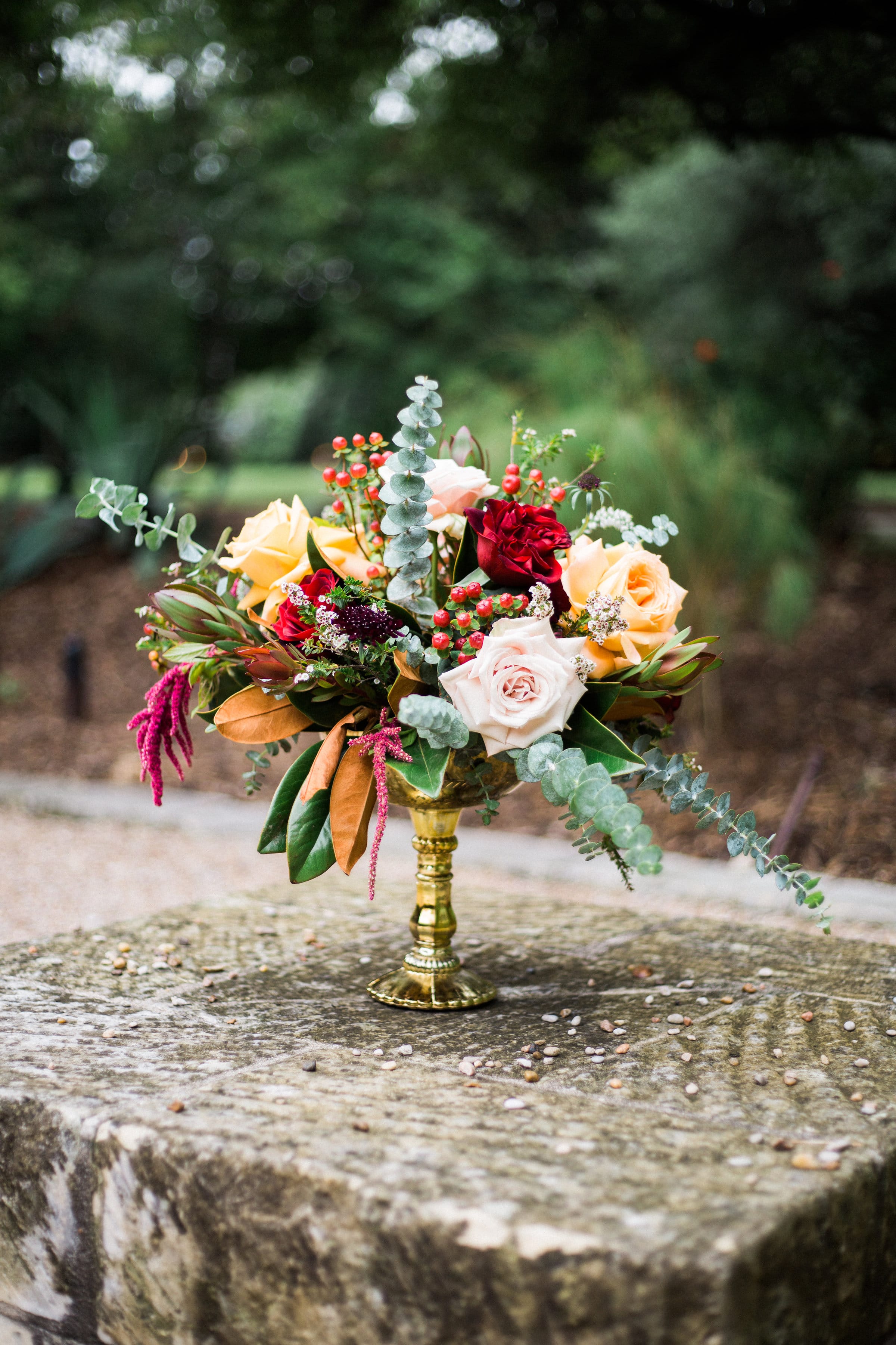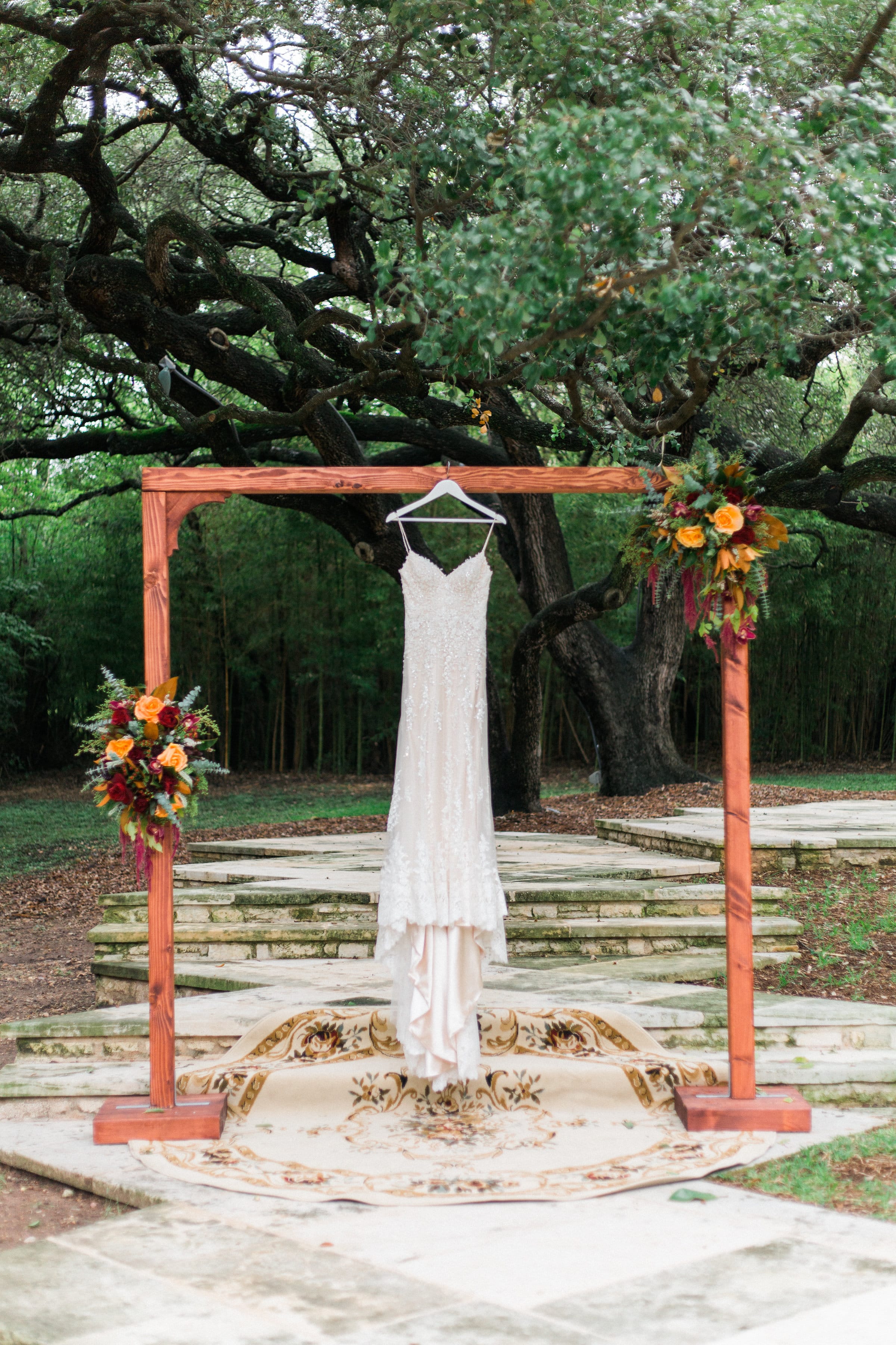 I graziosi pastelli e i fiori primaverili sono dietro l'angolo, ma se stai pianificando le nozze autunnali per il 2018, probabilmente sei in vena di sontuose tavolozze e romantici luccichii. Lasciati ispirare da questo matrimonio all'aperto con toni gioiello e abito di pizzo scintillante!