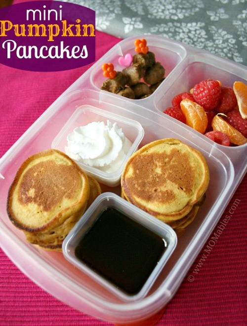 I cibi per la colazione non devono essere mangiati solo al mattino. Dai un'occhiata all'idea per il pranzo scolastico dei mini pancake alla zucca di Momables!