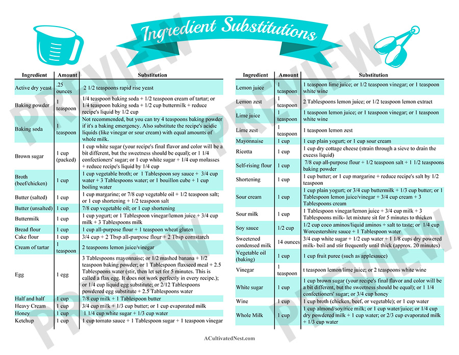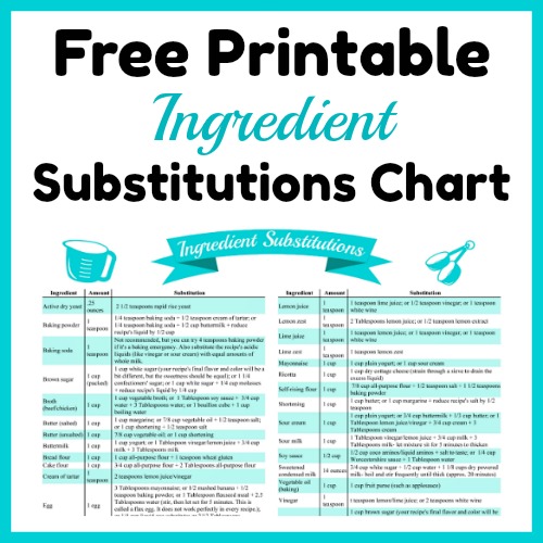 Pratica tabella delle sostituzioni degli ingredienti stampabile gratuitamente