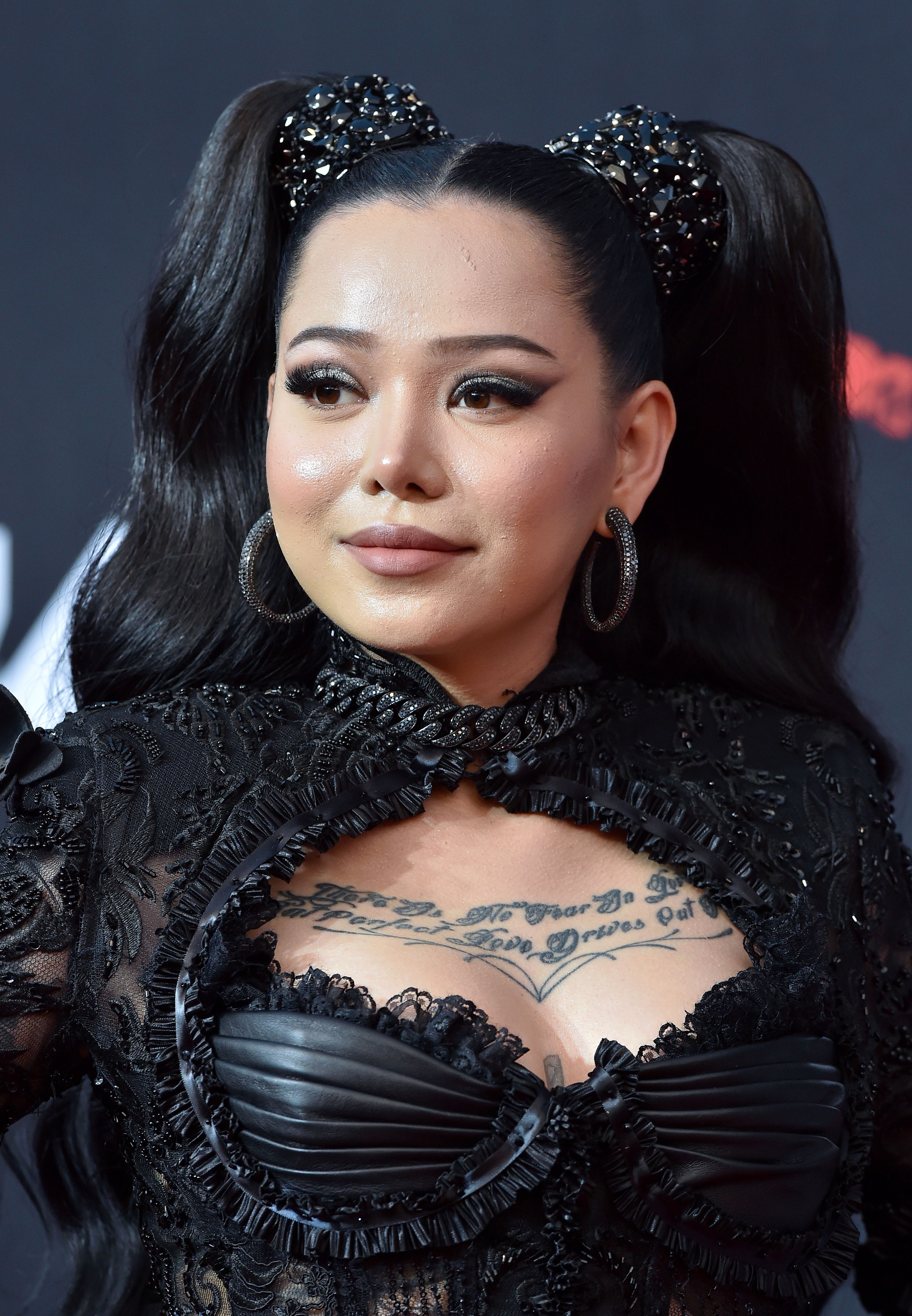 13 Rabo de cavalo duplo de Bella Poarch p Já estabelecemos que estamos trazendo de volta as tendências de quando éramos mais jovens, então por que não tranças também? Esta versão adulta se tornou o look da assinatura de Bella Poarch e é enfeitada com apliques de strass.