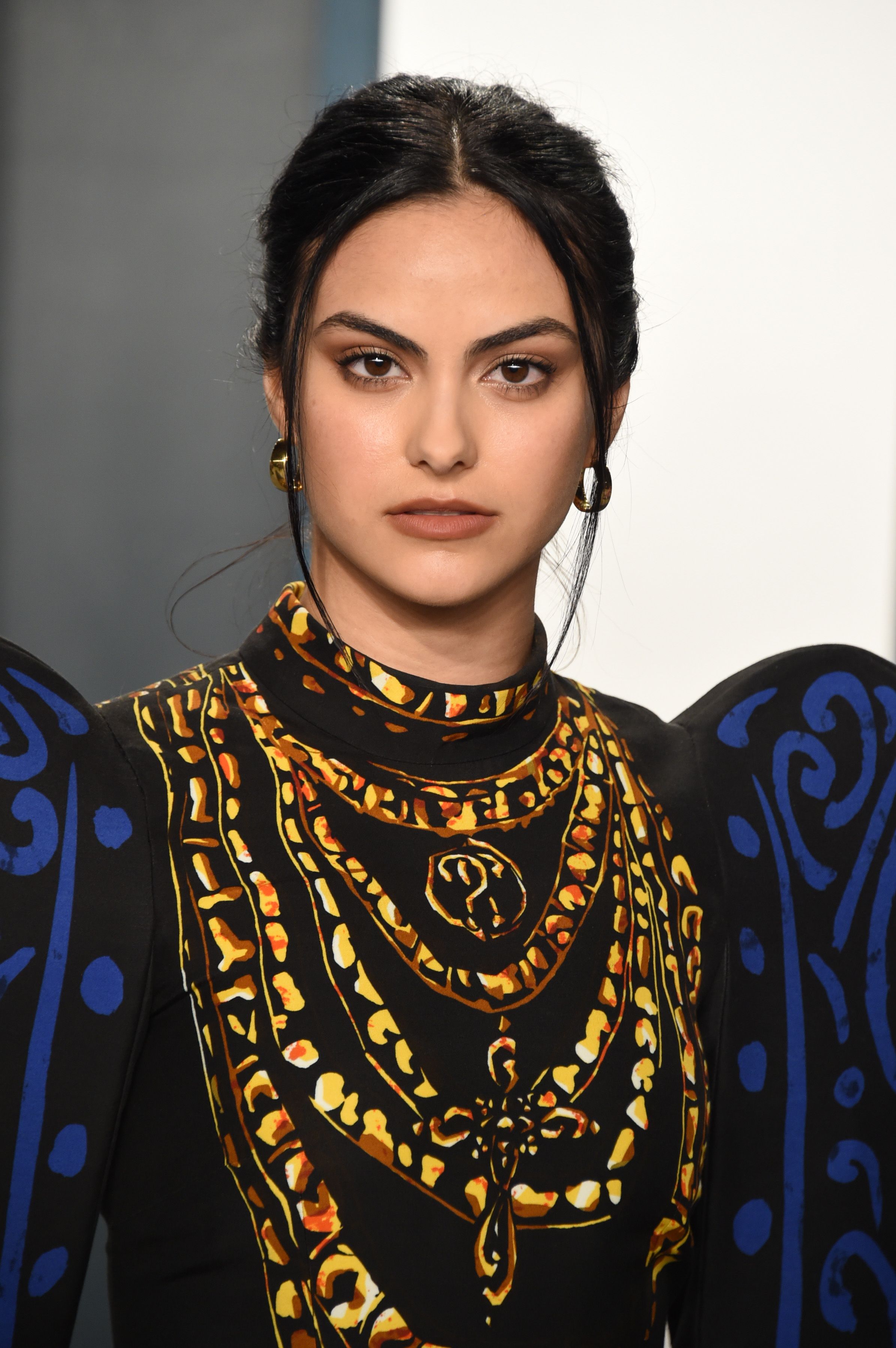 15 fios emoldurados de Camila Mendes p Outro exemplo de uso de fios frontais para emoldurar o rosto enquanto abraça um updo. Um estilo simples que se transforma em um profissional fodão com o toque de um pente.
